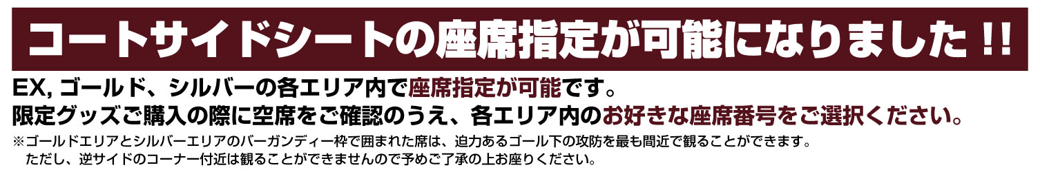 ※コートサイド各エリア内の座席番号が選択可能です。空いているお好きな座席番号をご指定ください。