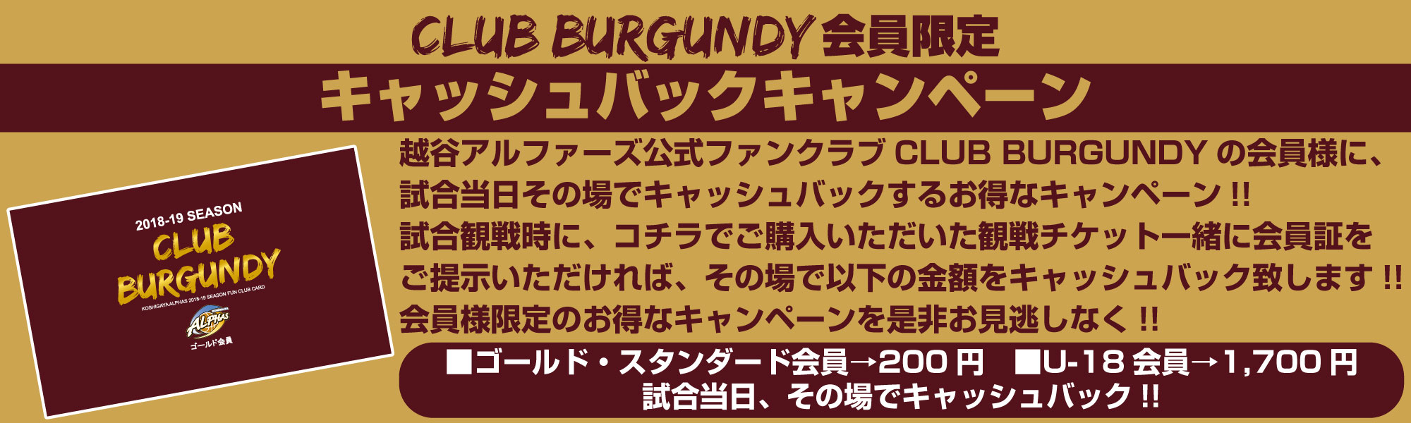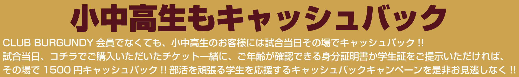 さらに!ファンクラブ会員と小中高生には試合当日にキャッシュバックキャンペーンも実施!!