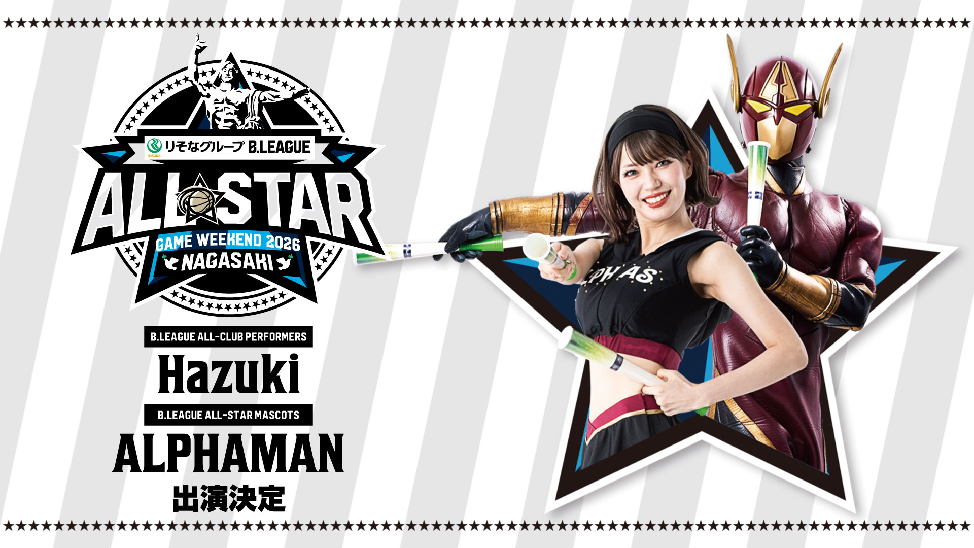 この度、2026年1月16日(金)~18日(日)に行われる「りそなグループ B.LEAGUE ALL-STAR GAME WEEKEND 2026 IN NAGASAKI」において、『B.LEAGUE ALL-CLUB PERFORMERS』にAlphaVenusを代表して"Hazuki"が、そして『B.LEAGUE ALL-STAR MASCOTS』に我らが"アルファマン"が出演することが決定しましたので、お知らせいたします。