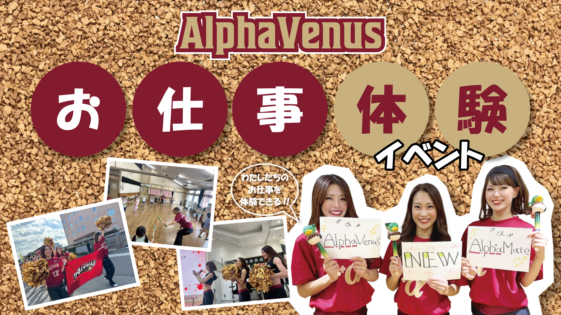 | 内 容 | 越谷アルファーズ専属チアリーダー『AlphaVenus』のプロ契約メンバーと一緒に、チアダンスやMCなど、チアリーダーのお仕事に楽しくチャレンジしてみましょう!! |
