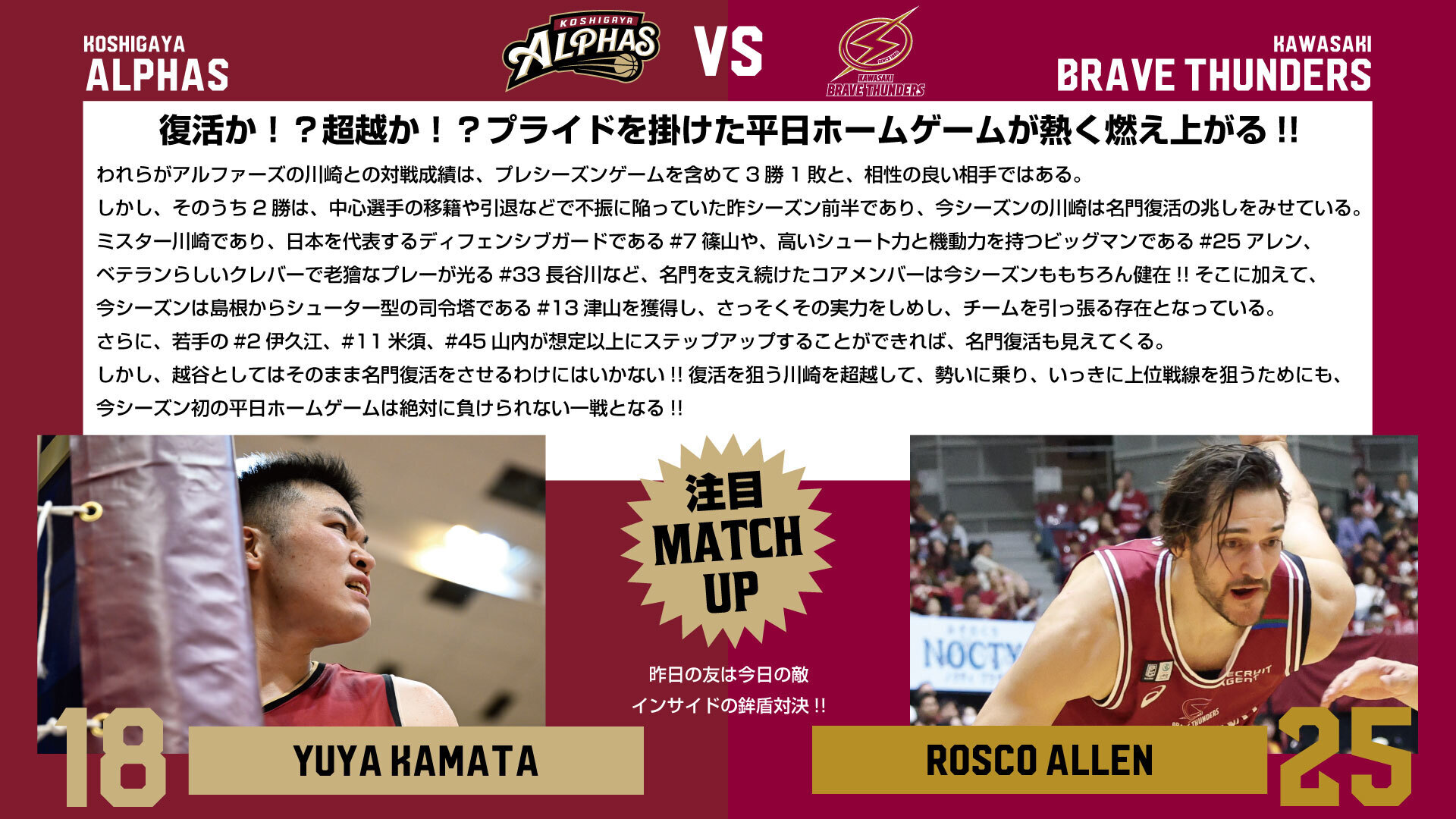 越谷アルファーズvs川崎ブレイブサンダース TIP-OFF