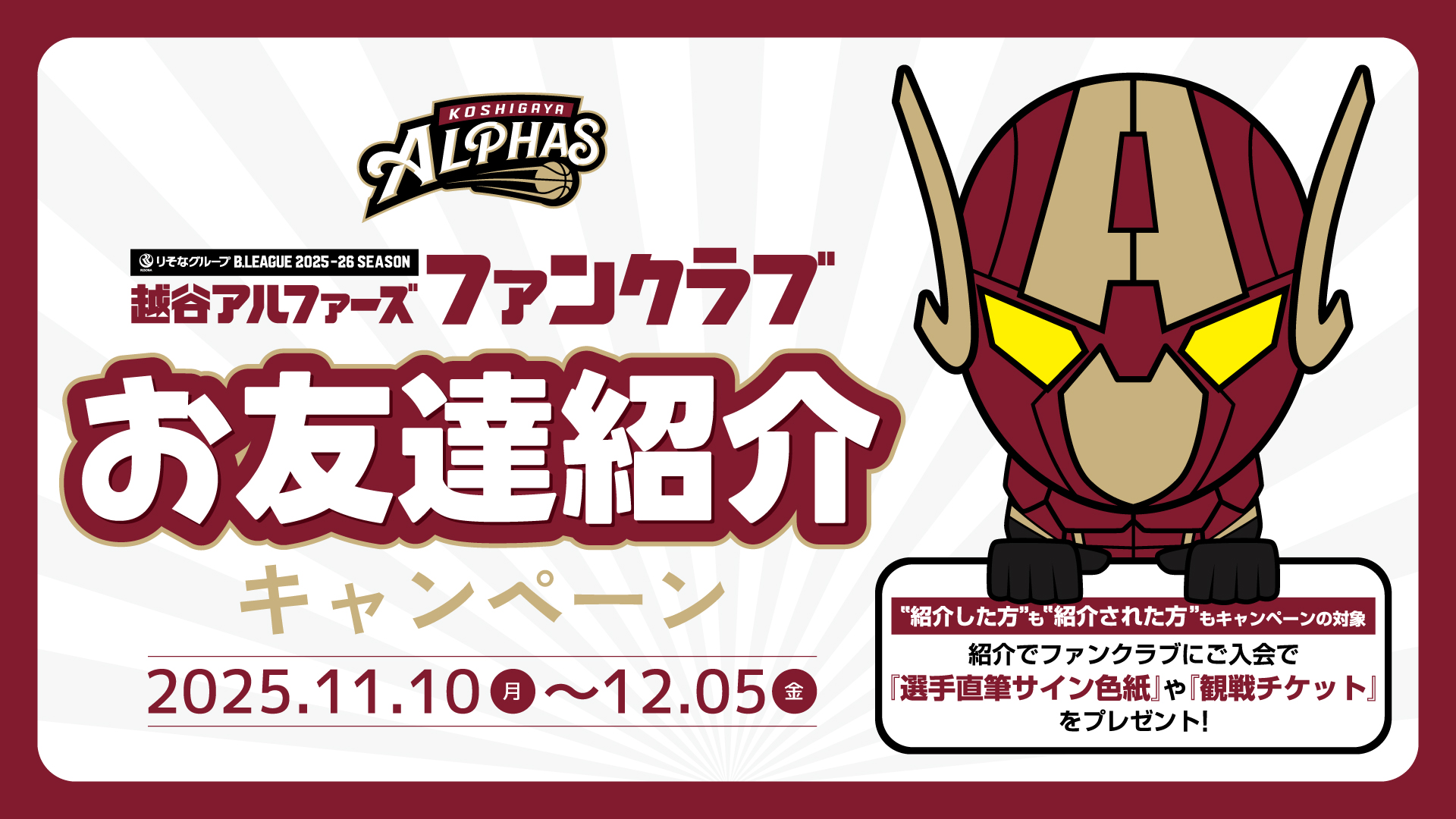 【越谷アルファーズ 2025-26シーズン ファンクラブ】"お友達紹介キャンペーン"実施のお知らせ