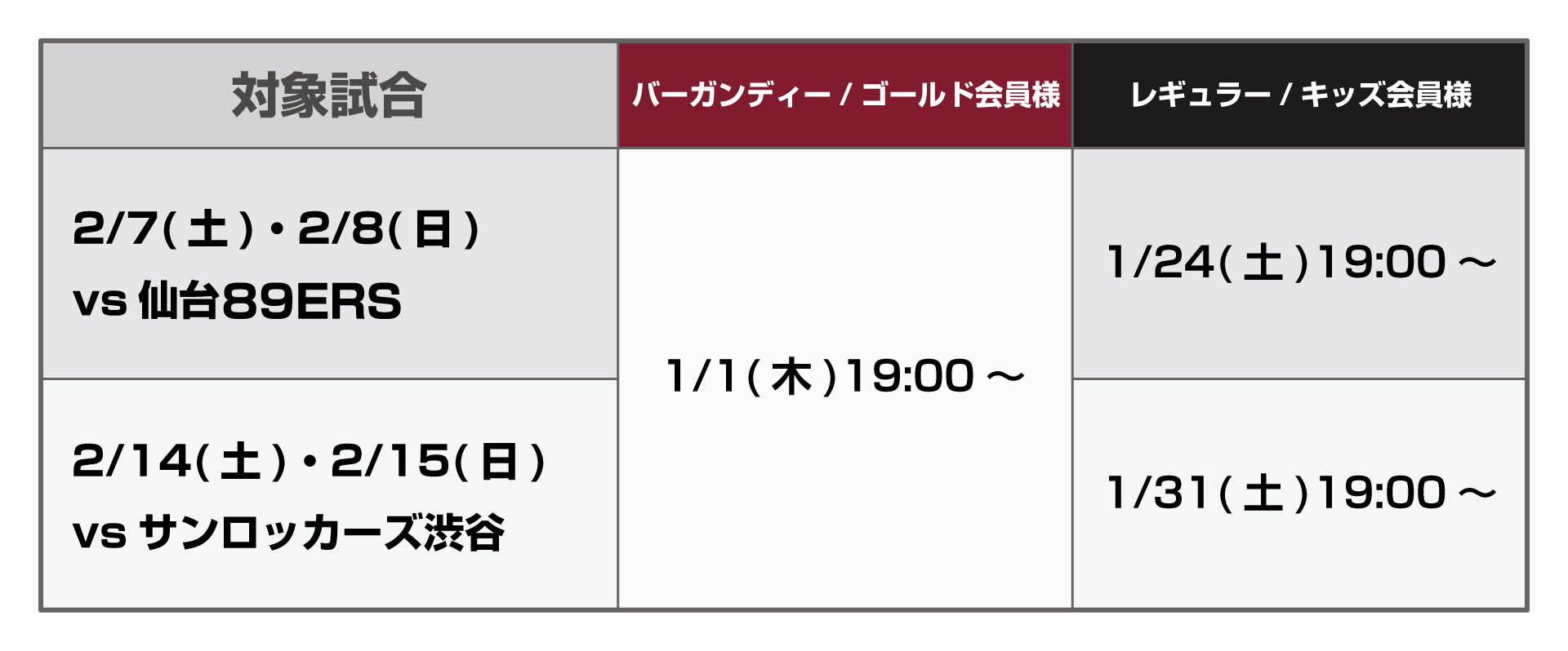 2月開催試合チケット販売概要