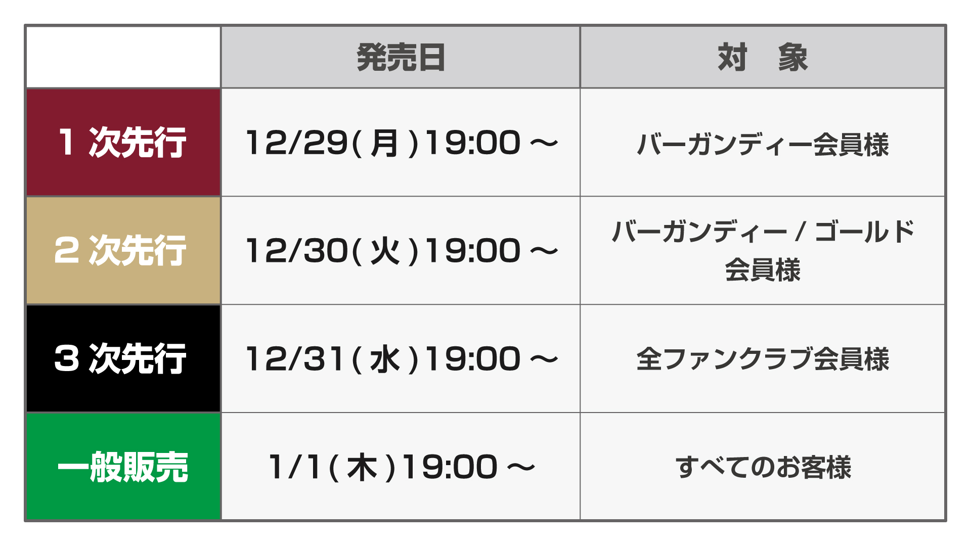 • バーガンディー/ゴールド会員 ▶ 1月1日(木)19:00~