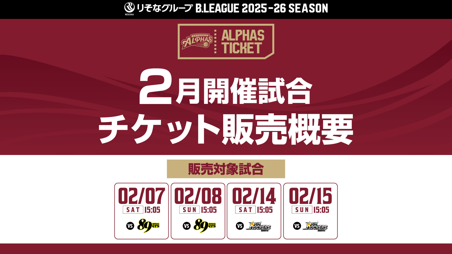 【りそなグループB.LEAGUE 2025-26 SEASON】越谷アルファーズ"2月開催試合チケット販売概要"のお知らせ
