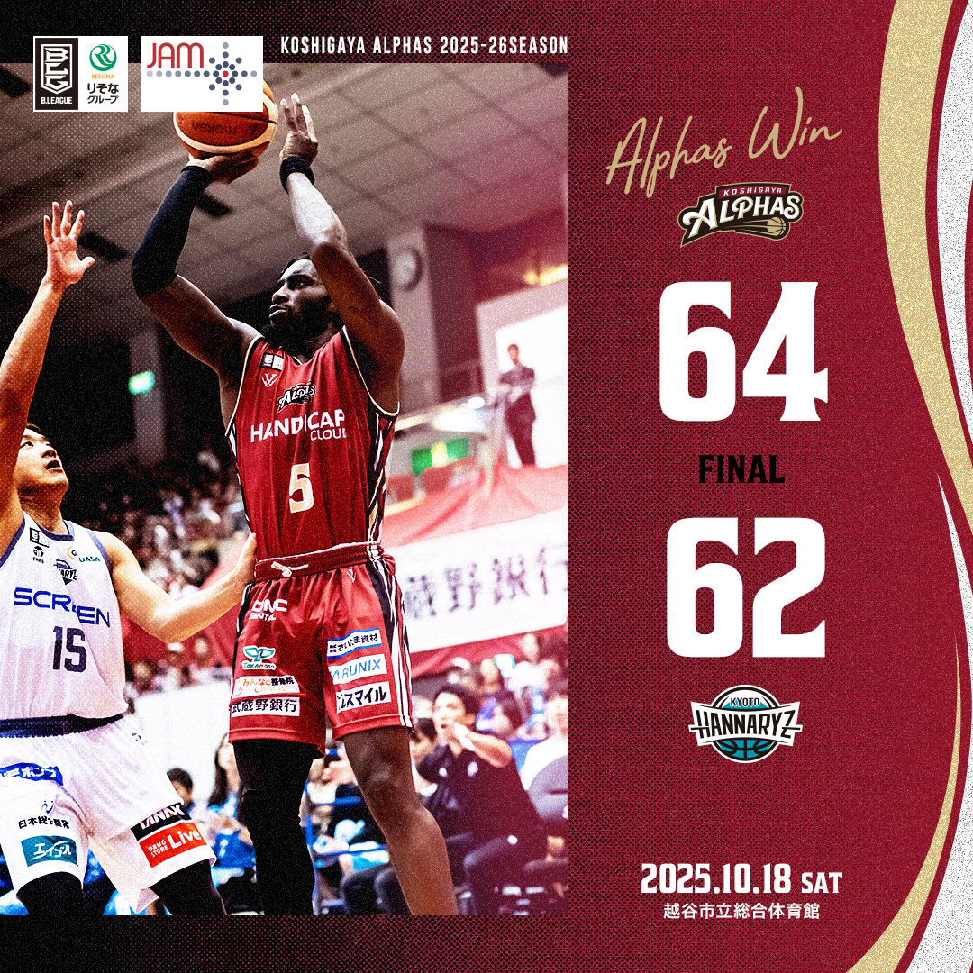 【試合レポート】りそなグループ B.LEAGUE 2025-26 SEASON 第4節 GAME1 2025年10月18日(土) vs.京都ハンナリーズ〔HOME GAME〕
