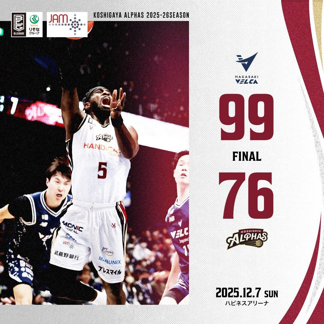 【試合レポート】りそなグループ B.LEAGUE 2025-26 SEASON 第12節 GAME1 2025年12月6日(土) vs.長崎ヴェルカ〔AWAY GAME〕