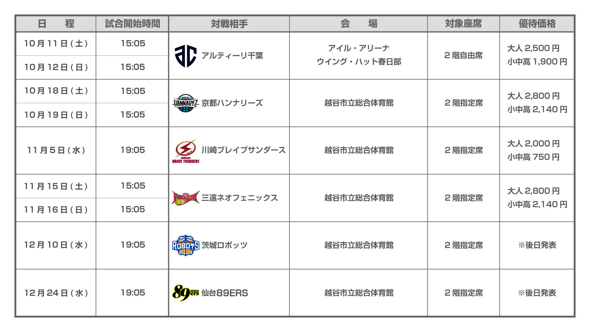 試合毎に優待価格は異なります。 - チケットの引換はご本人様のみ可能です。代理での引換は出来ませんのでご了承ください。