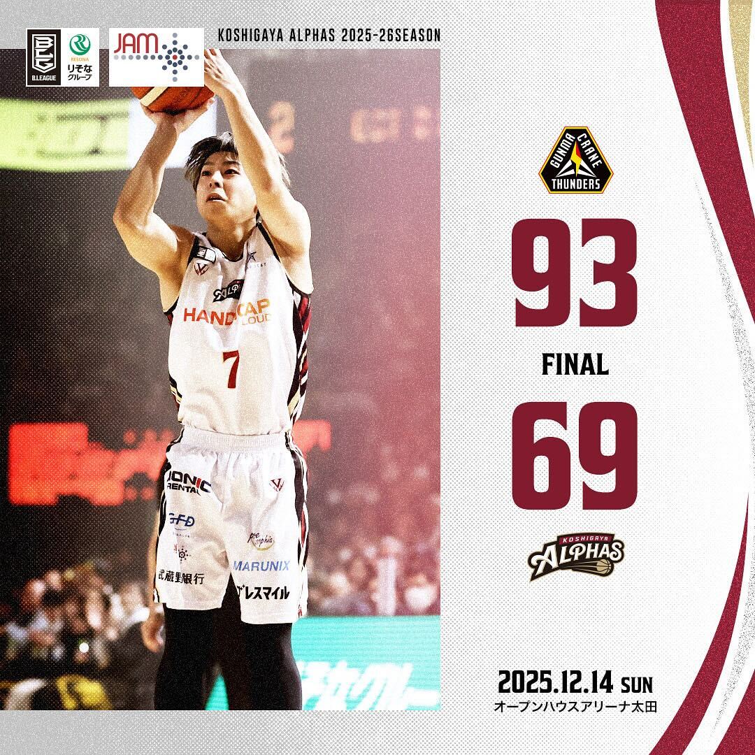 【試合レポート】りそなグループ B.LEAGUE 2025-26 SEASON 第14節 GAME2 2025年12月14日(日) vs.群馬クレインサンダーズ〔AWAY GAME〕