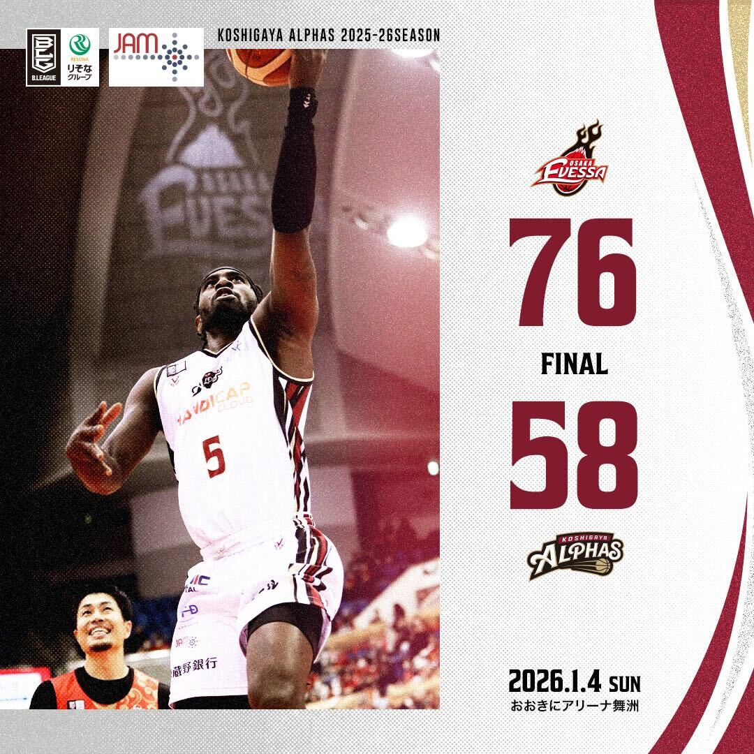 【試合レポート】りそなグループ B.LEAGUE 2025-26 SEASON 第18節 GAME2 2026年1月4日(日) vs.大阪エヴェッサ〔AWAY GAME〕
