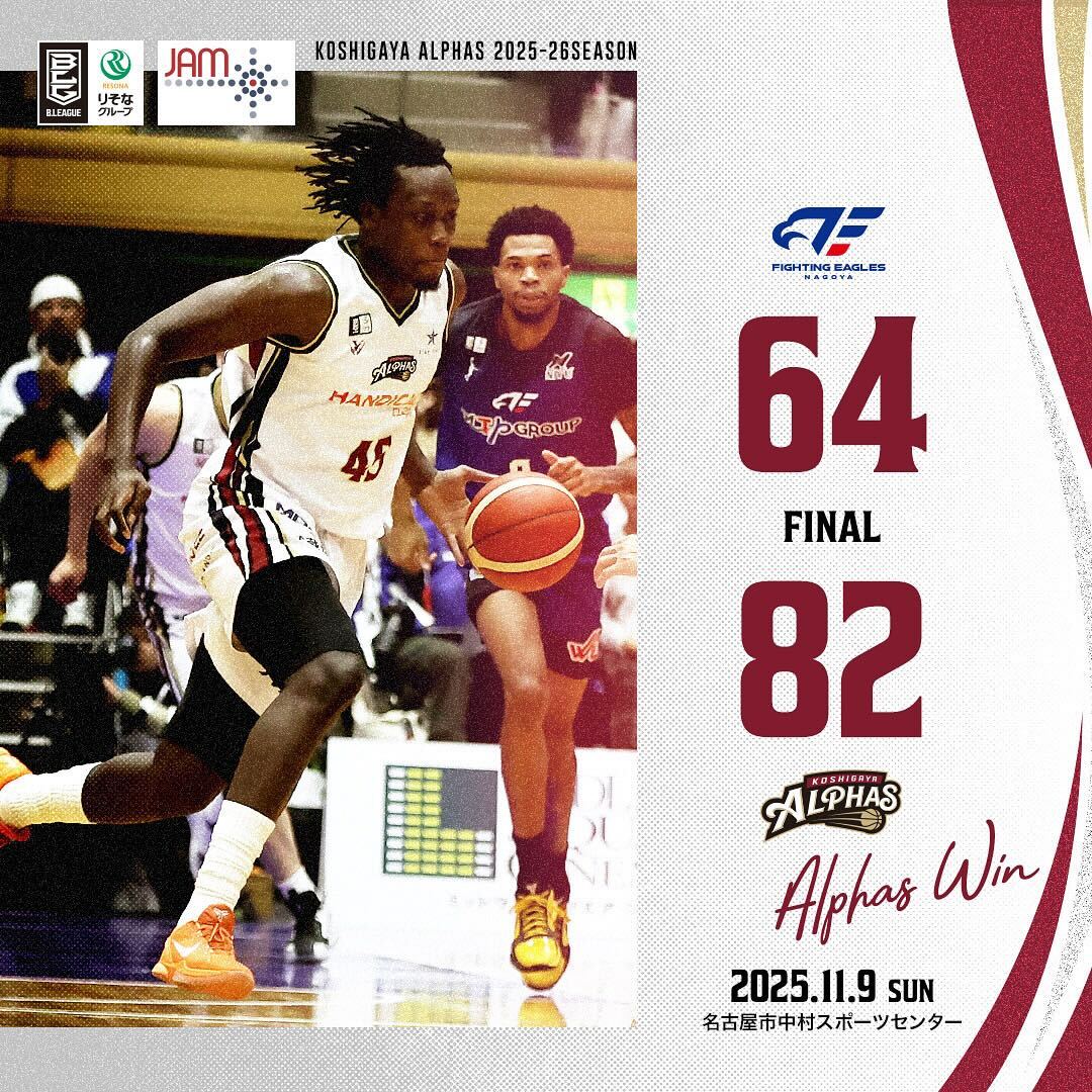 【試合レポート】りそなグループ B.LEAGUE 2025-26 SEASON 第9節 GAME2 2025年11月9日(日) vs.ファイティングイーグルス名古屋〔AWAY GAME〕